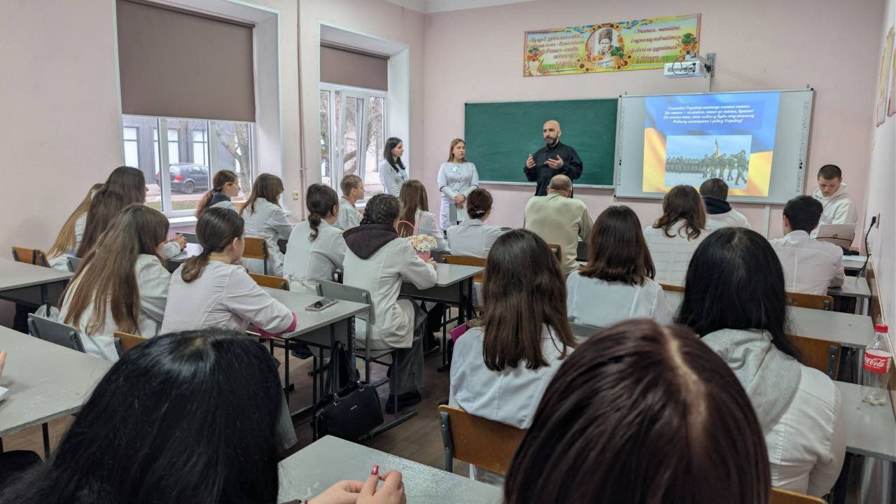 Студенти із захопленням слухали історії про військових медиків-фельдшерів та санітарів, які, ризикуючи власним життям, евакуюють поранених та стабілізують їхній стан.