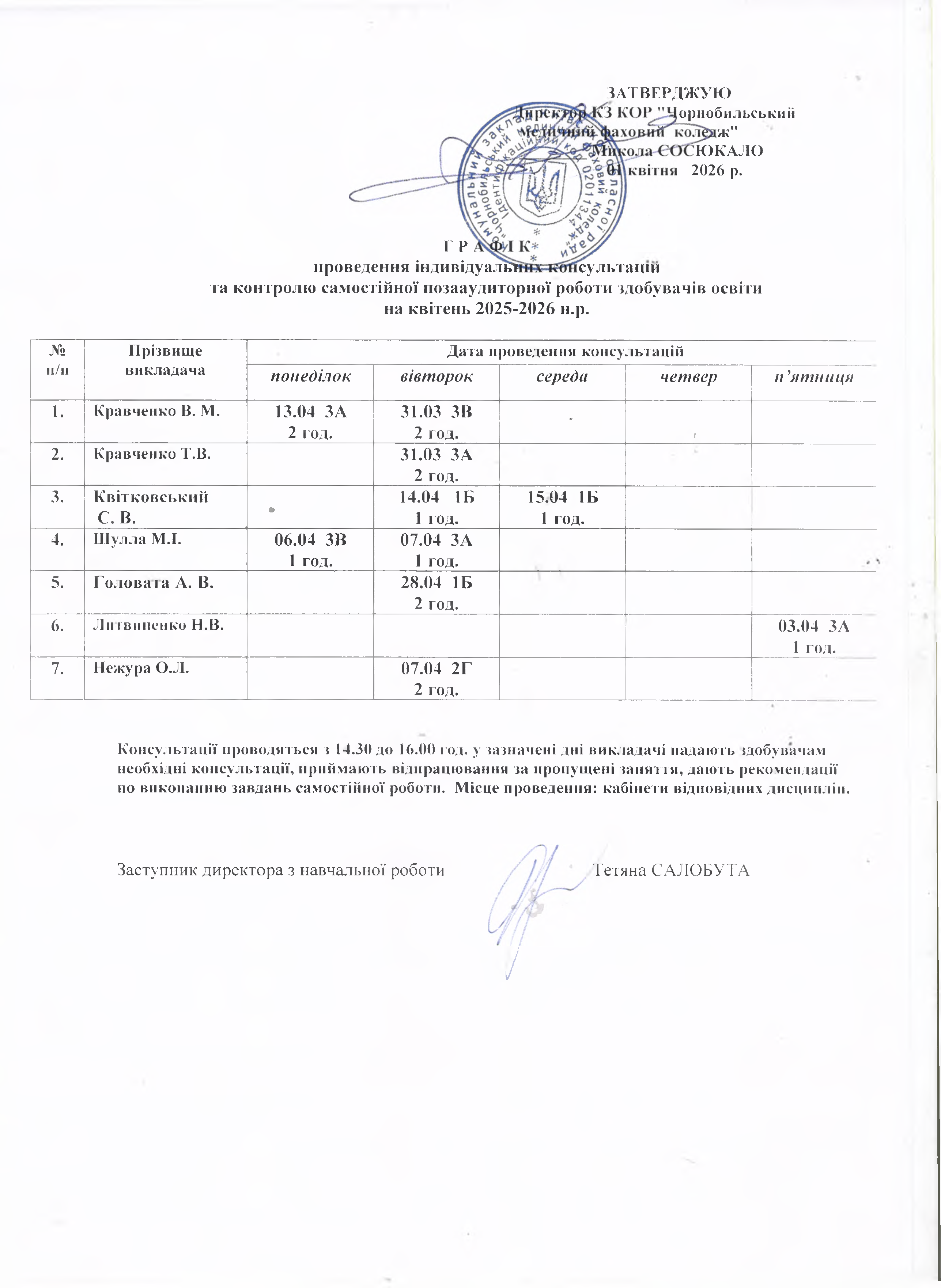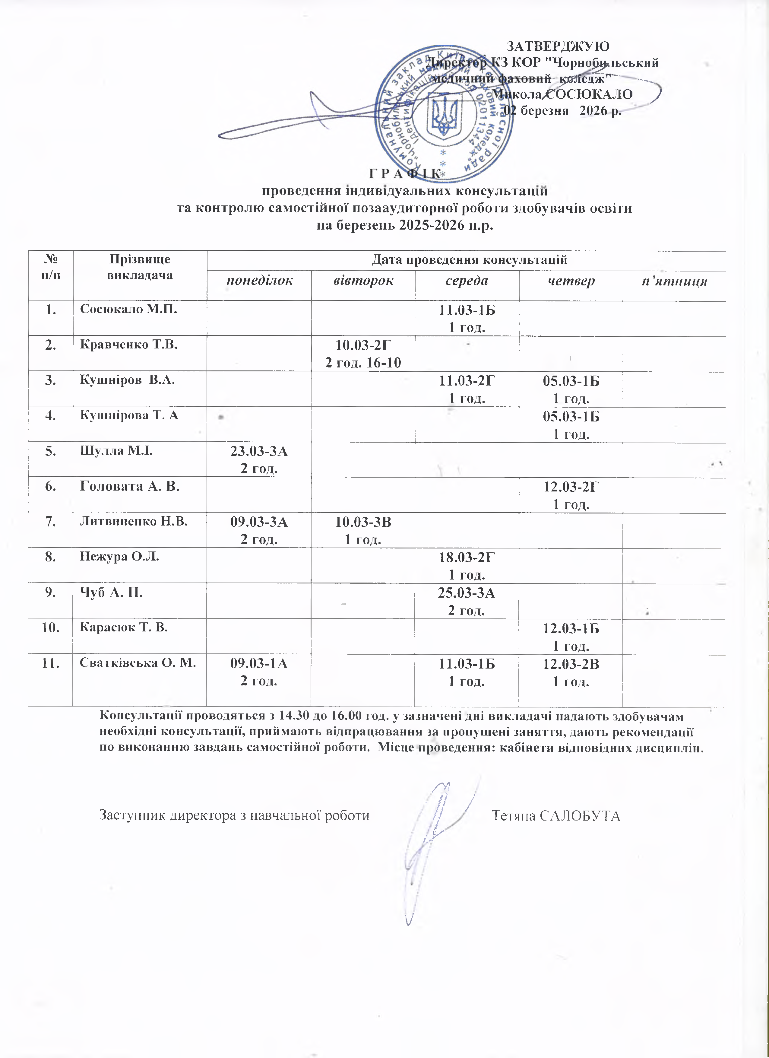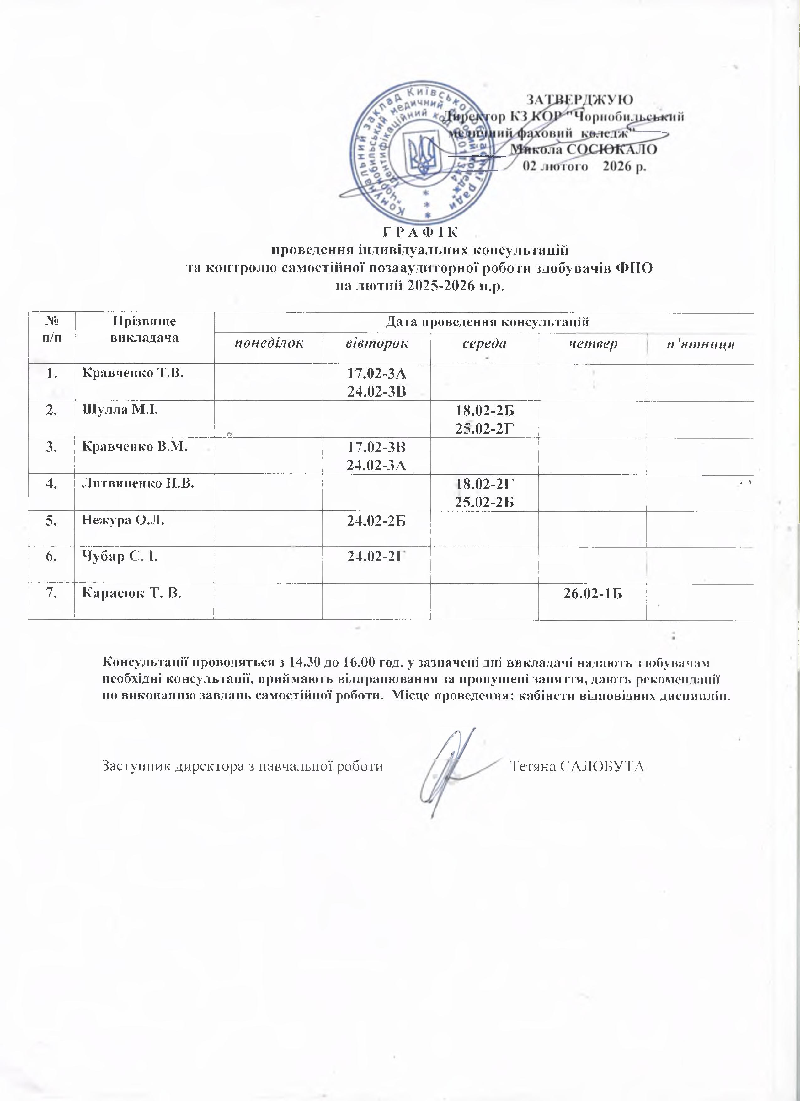 Розклад консультацій