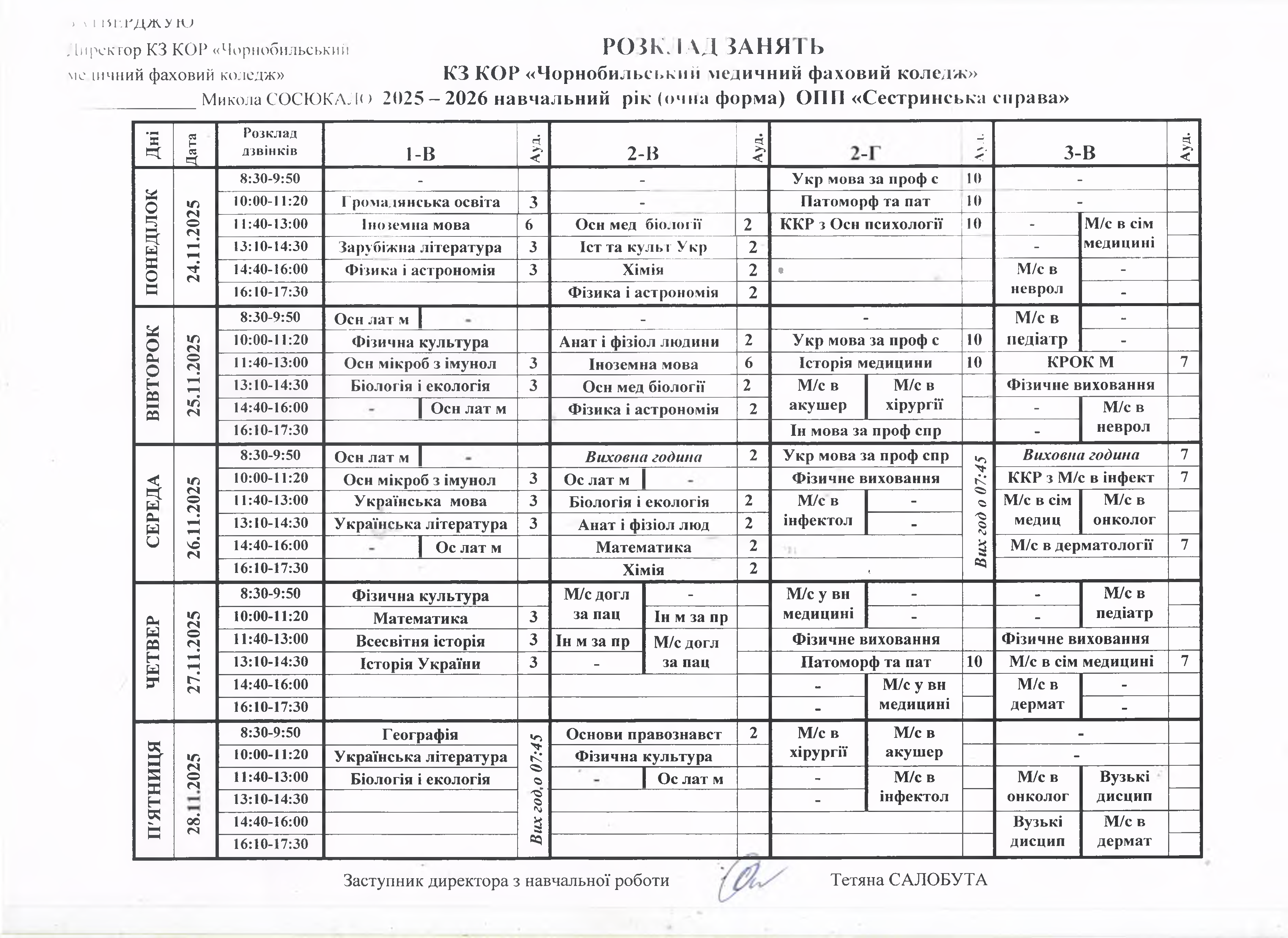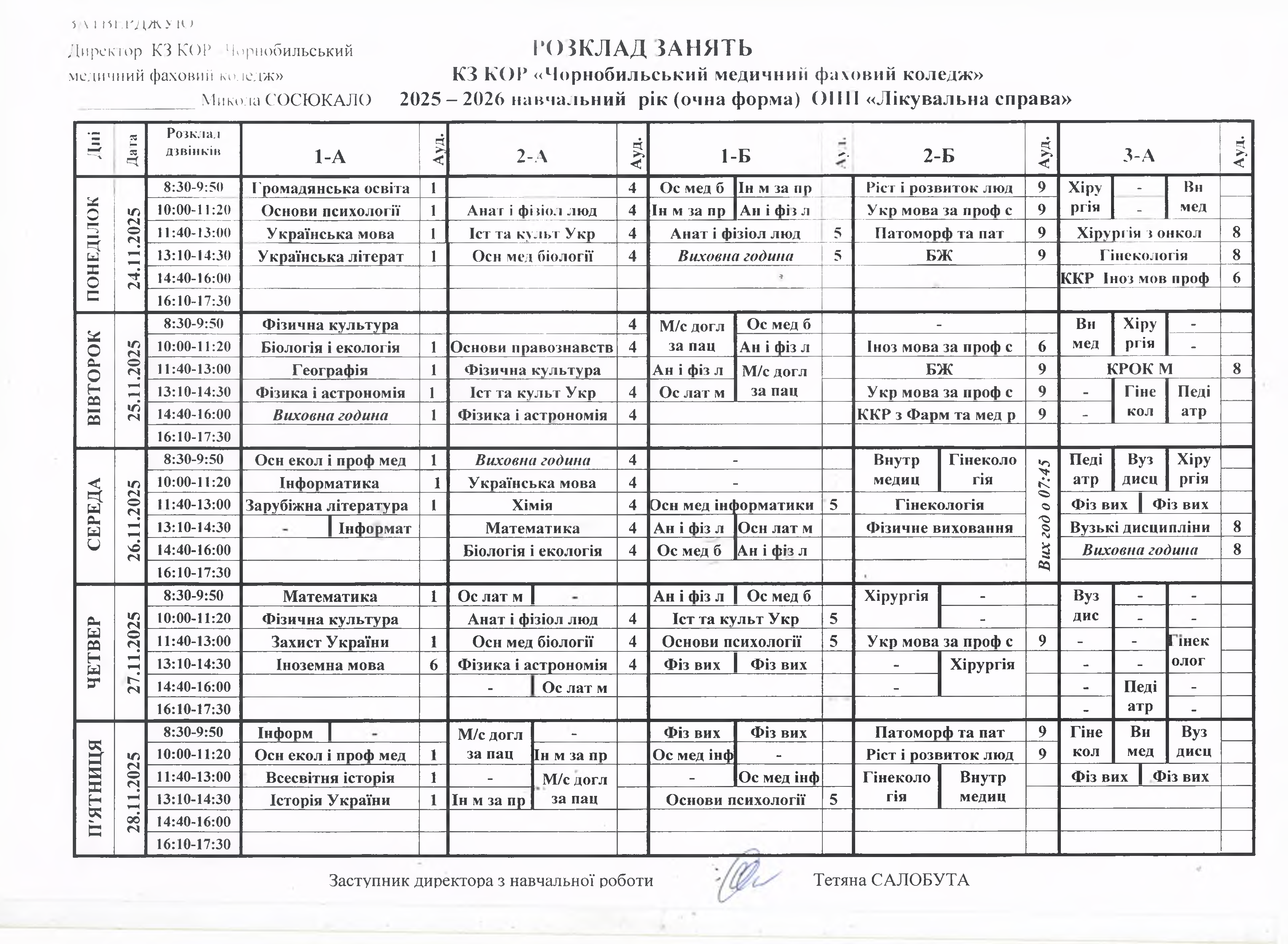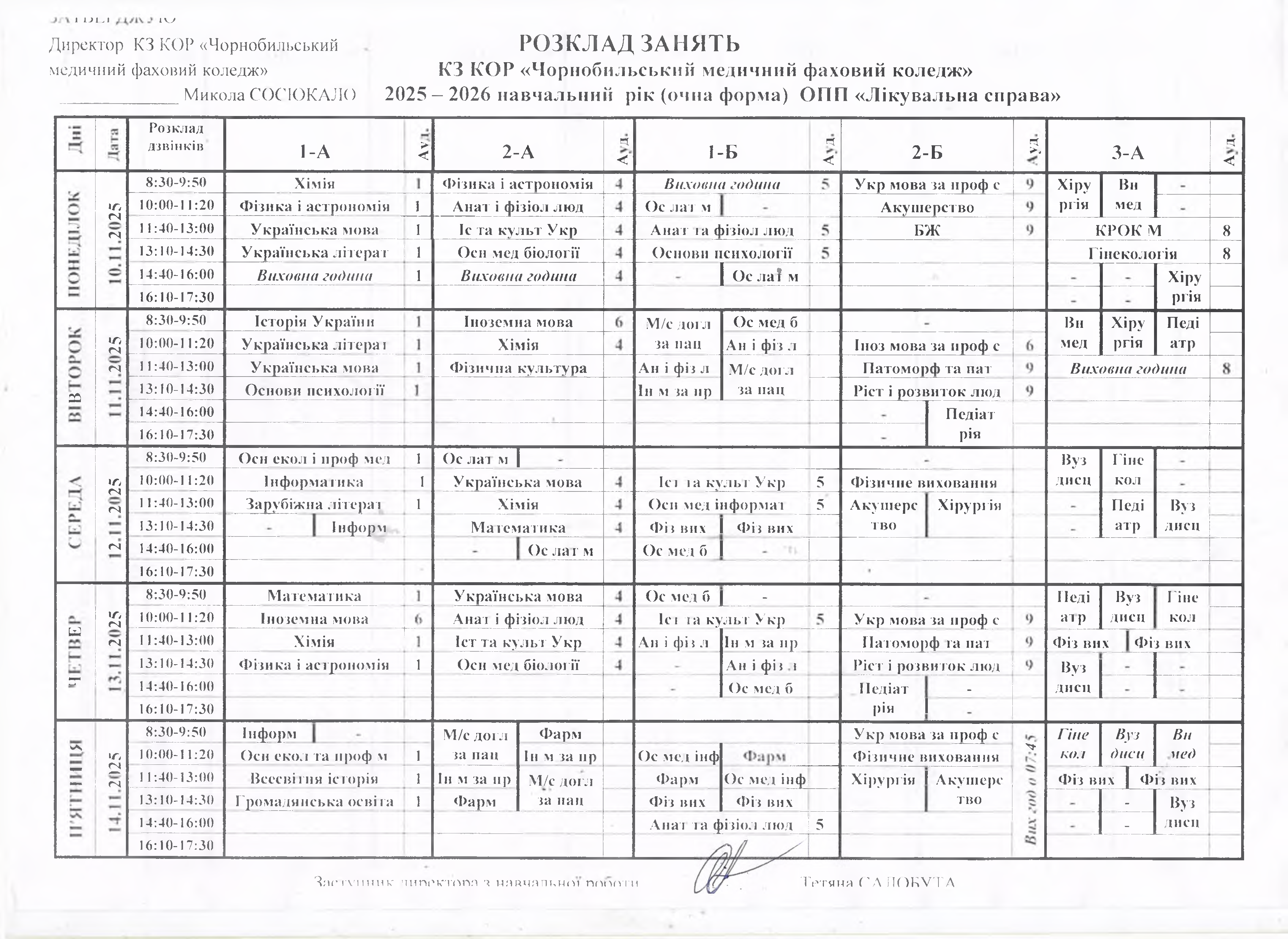 КЗ КОР «Чорнобильський медичний фаховий коледж» 2023 — 2024 навчальний рік (змішана форма)